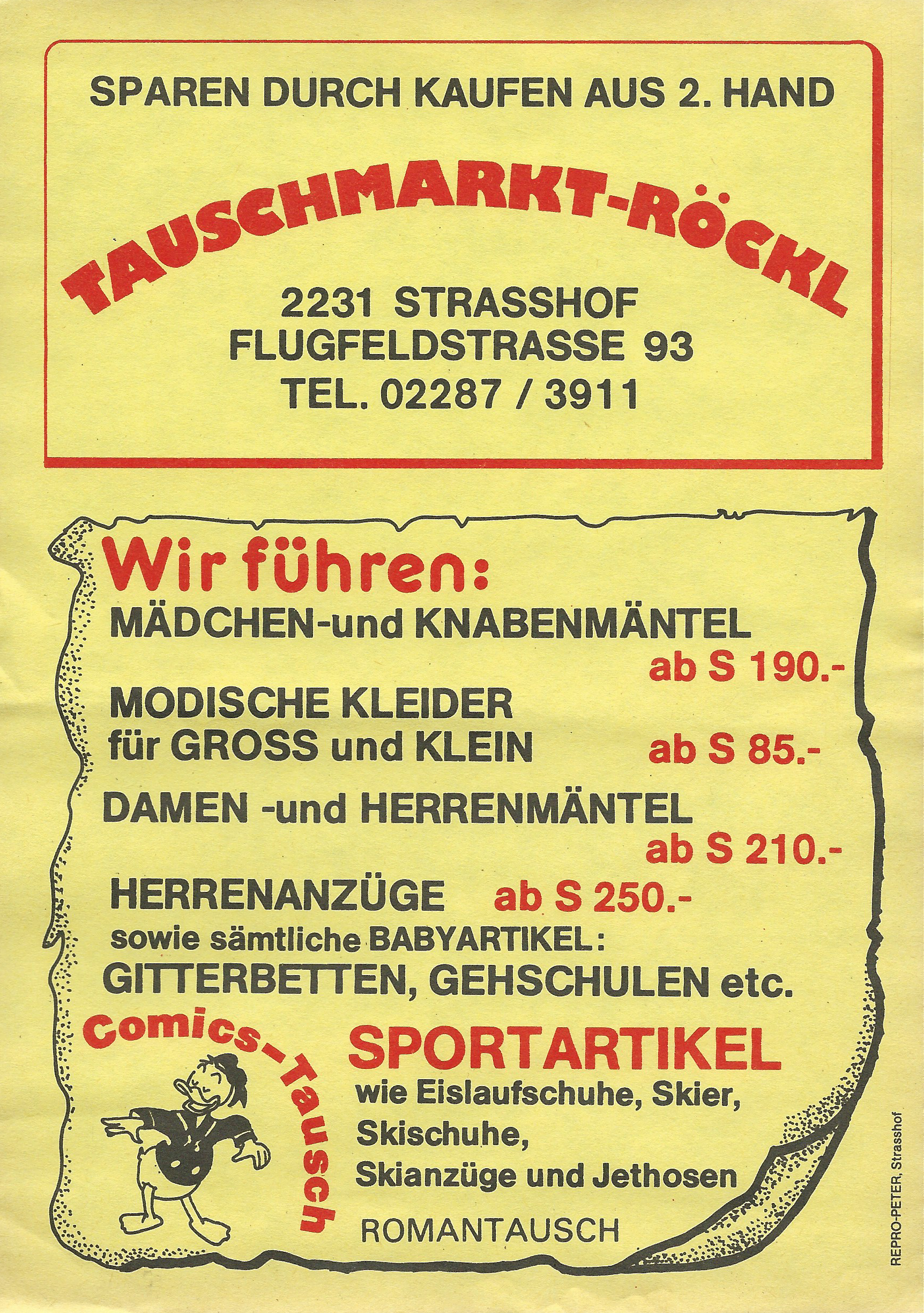 Nach einem Rechtsstreit aufgrund der Namensgleichheit wurde aus der Tauschzentrale der Tauschmarkt Röckl. Neben Kinder- und Sportartikeln wurden auch eifrig Comics und Romane getauscht.