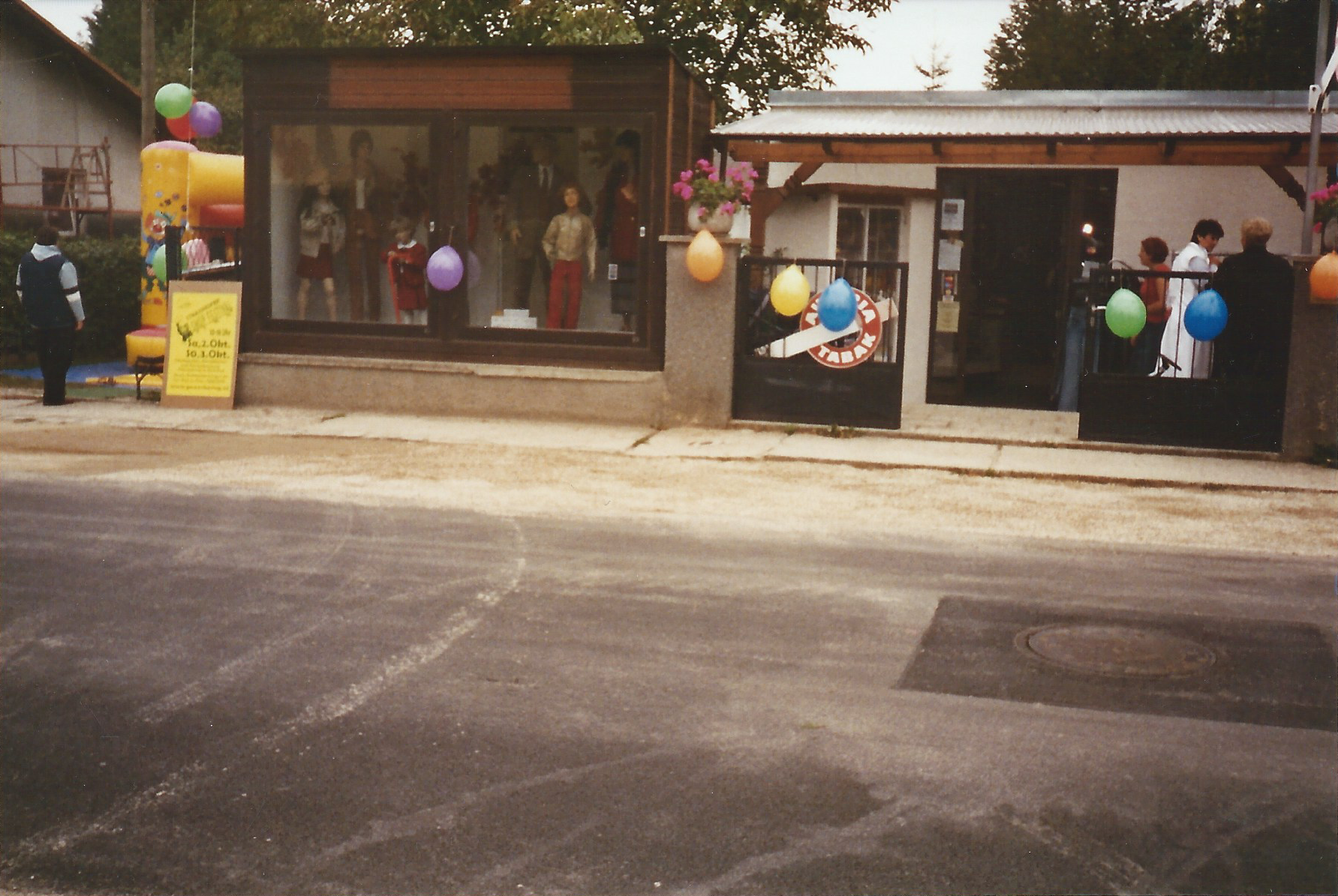 Zum ersten Strasshofer Shop Festival 2001 gab es eine Luftburg und Weinverkostung (und auch bereits das Vordach vor dem Geschäft).