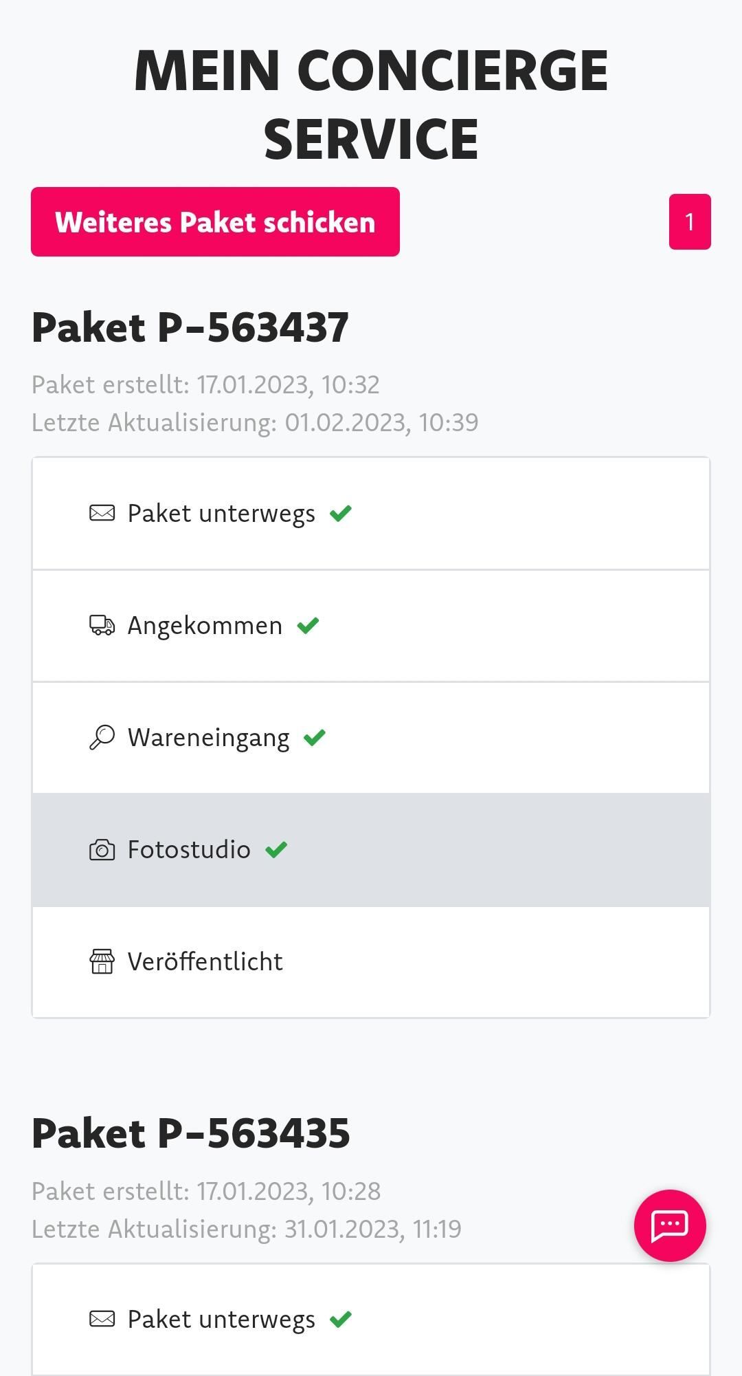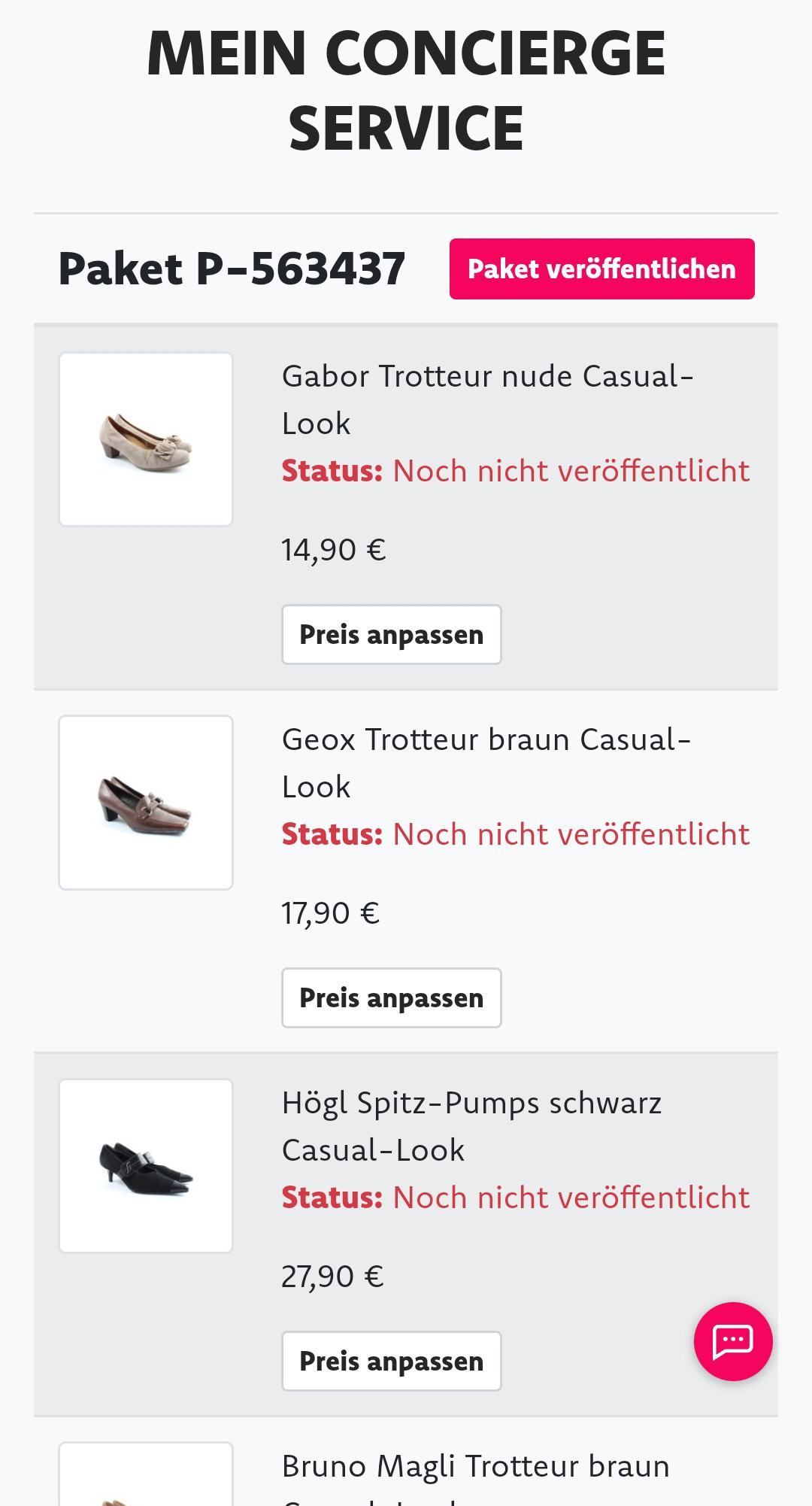 Mädchenflohmarkt bietet neben der Option selbst zu verkaufen auch einen Concierge-Service. Auch hier gibt es vorab einen „Wie groß ist mein Anteil?“-Check um zu prüfen ob sich dieser Verkauf überhaupt lohnt. Genommen wird – wie der Name nahelegt – ausschließlich Damenbekleidung. Der ungefähre Verkaufspreis muss bei der Nutzung des Concierge-Service mindestens 15 € betragen. Achtung, Mädchenflohmarkt kauft nicht an, sondern arbeitet auf Kommission! Wobei die Mindestprovision 13,90 € beträgt. Der Aufwand in der Vorbereitung ist geringer, man benötigt nur das Versand-Etikett und legt eventuell eine Liste mit dem gewünschten Verkaufspreis bei. Ich habe je 1 Paket Schuhe und Cocktailkleider bzw. Dirndl abgeschickt. Laut Impressum ist der Unternehmenssitz in Deutschland, aber das Paket ging nach Rzeszów in Polen. Den Status der Sendung sowie den späteren Verkaufsverlauf konnte ich online mitverfolgen, was hilfreich ist da hier mein Erlös vom Verkaufspreis abhängig ist. Bevor die Artikel veröffentlicht wurden, hatte ich die Möglichkeit die Preise anzupassen oder direkt zu bestätigen, und danach das gesamte Paket zu veröffentlichen. Wie war das, nur Artikel mit mindestens 15 €? Ein Paar Schuhe hatte einen vorgeschlagenen Startpreis von nur 14,90 €... na gut, ich lasse den Concierge mal machen. Auch was die automatische Reduktion betrifft. Nach ca. 1-2 Wochen waren beide Pakete veröffentlicht, und meine Produkte erhielten die ersten Likes.